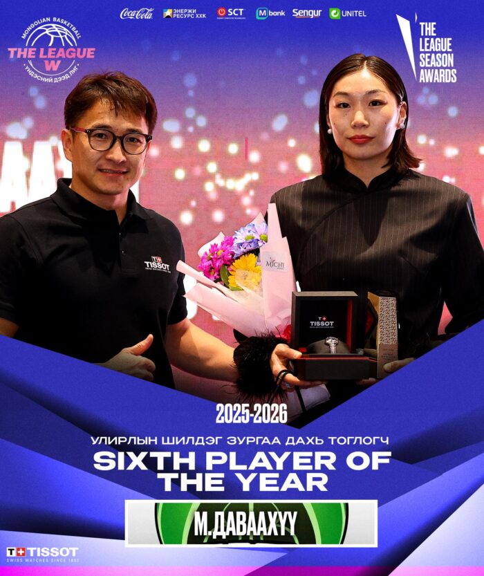 МСБХ-ны Эмэгтэй Үндэсний Дээд Лигийн “Улирлын Шилдэг 6 Дахь Тоглогч”-ийн шагналын эзнээр Этүгэн Ирвэсүүд багийн тоглогч М.Даваахүү тодорлоо.