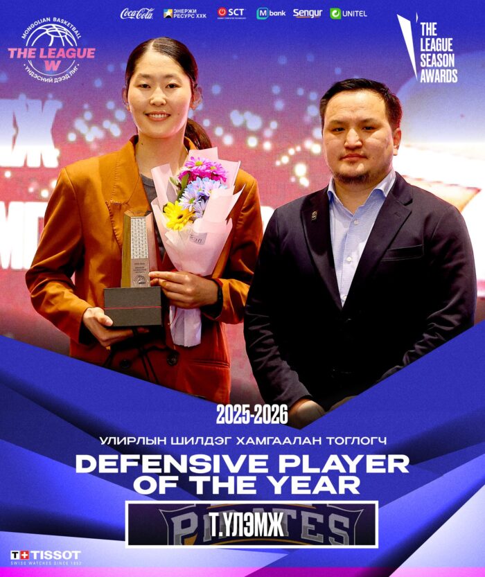 МСБХ-ны Эмэгтэй Үндэсний Дээд Лигийн “Улирлын Шилдэг Хамгаалан Тоглогч”-ийн шагналын эзнээр Пайретс багийн тоглогч Т.Үлэмж тодорлоо.
