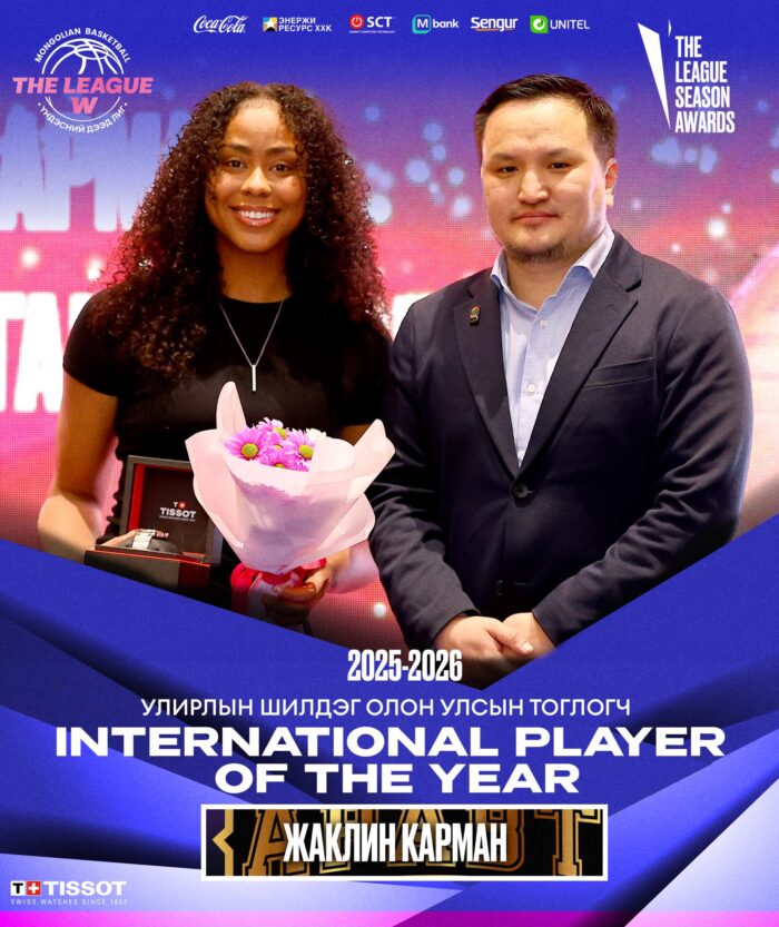 Жаклин Карман Эмэгтэй Үндэсний Дээд Лигийн 2025-2026 оны улирлын 15 тоглолтод оролцохдоо 25.9 оноо 5.3 самбар 1.9 оновчтой дамжуулалт 2.6 бөмбөг таслалт гэсэн статистикыг үзүүлжээ.